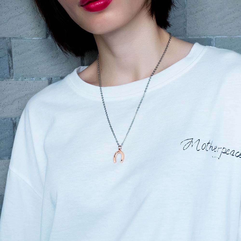 [ペアルック用 プレゼント] ホースシューネックレス ペアセット メンズ レディース おそろい お揃い カップル 男性 女性 ネックレスチェーン 首飾り チョーカー サージカルステンレス316L ピンクゴールド ブラック クリスマス 黒色 馬蹄型 ヒヅメ 英語 メッセージ 稲妻 雷